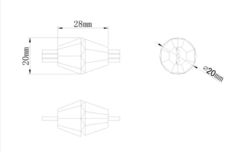 WS2811ic 20mm RGB Diamond 3D Pixel led ball,DC12V input,0.6W/pc, 2pcs SMD3535 RGB LEDs, grey wire, IP68; 6inch wire spacing ball’s center to center, attached with Our standard 3core Xconnect waterproof pigtail 10cm male input and female output ;  (or the length can be customized)